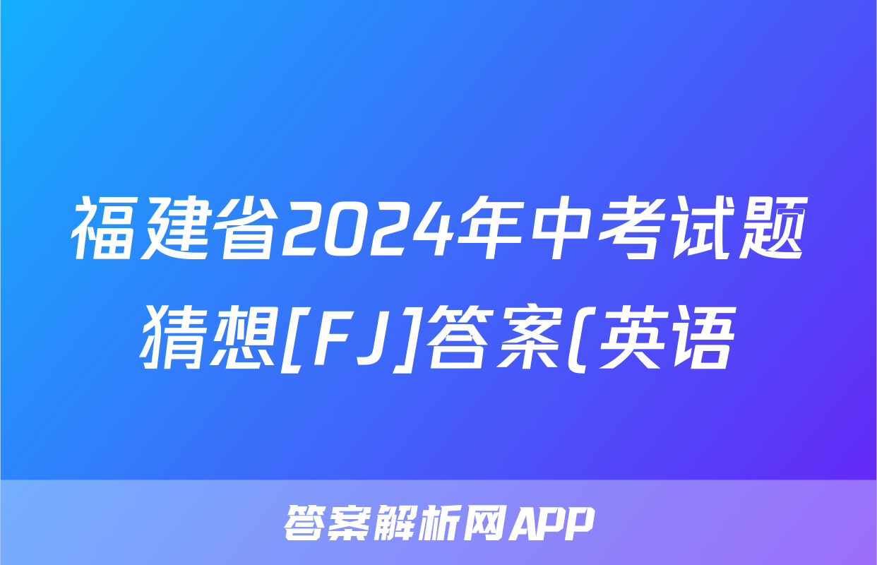 福建省2024年中考试题猜想[FJ]答案(英语)正在持续更新,目前大联考答案为大家整理了相关试题及答案,供大家查缺补漏,高效提升成绩。