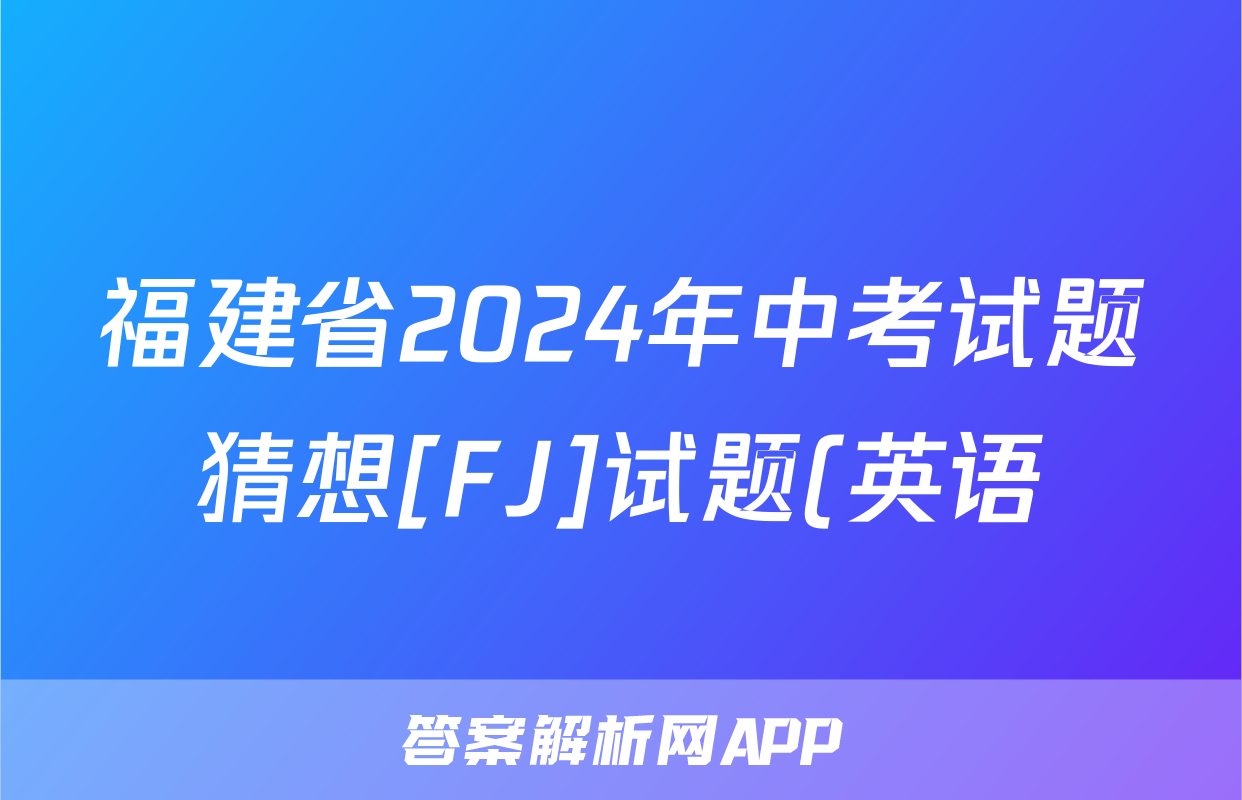 福建省2024年中考试题猜想[FJ]试题(英语)正在持续更新,目前大联考答案为大家整理了相关试题及答案,供大家查缺补漏,高效提升成绩。