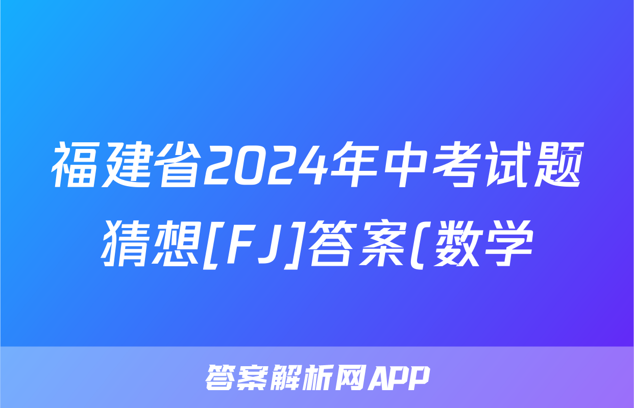 福建省2024年中考试题猜想[FJ]答案(数学)正在持续更新,目前大联考答案为大家整理了相关试题及答案,供大家查缺补漏,高效提升成绩。
