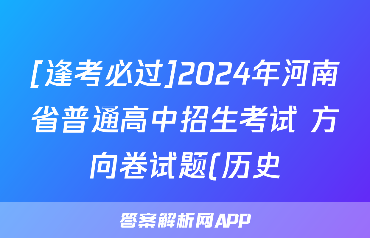 [逢考必过]2024年河南省普通高中招生考试 方向卷试题(历史)