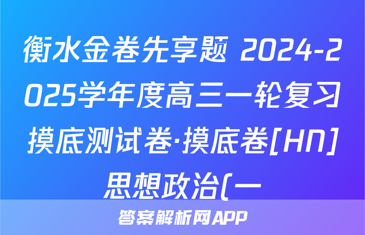 衡水金卷先享题 2024-2025学年度高三一轮复习摸底测试卷·摸底卷[HN]思想政治(一)1答案正在持续更新,目前大联考答案为大家整理了相关试题及答案,供大家查缺补漏,高效提升成绩。
