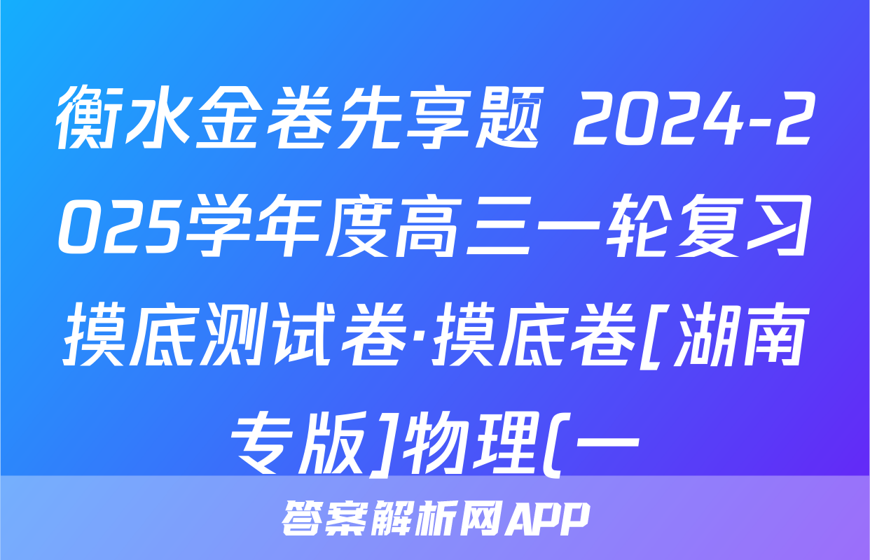 衡水金卷先享题 2024-2025学年度高三一轮复习摸底测试卷·摸底卷[湖南专版]物理(一)1答案正在持续更新,目前大联考答案为大家整理了相关试题及答案,供大家查缺补漏,高效提升成绩。