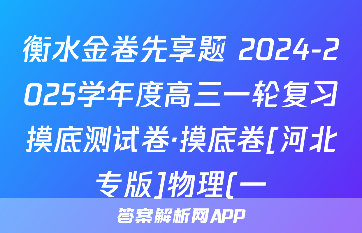 衡水金卷先享题 2024-2025学年度高三一轮复习摸底测试卷·摸底卷[河北专版]物理(一)1答案正在持续更新,目前大联考答案为大家整理了相关试题及答案,供大家查缺补漏,高效提升成绩。