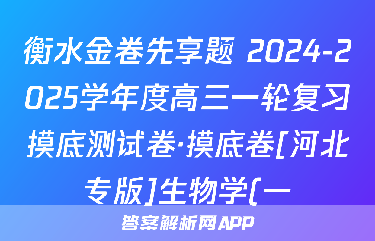 衡水金卷先享题 2024-2025学年度高三一轮复习摸底测试卷·摸底卷[河北专版]生物学(一)1答案