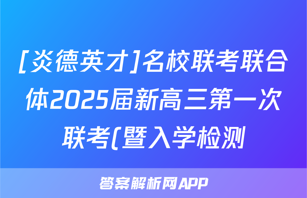 [炎德英才]名校联考联合体2025届新高三第一次联考(暨入学检测)化学试题正在持续更新,目前大联考答案为大家整理了相关试题及答案,供大家查缺补漏,高效提升成绩。