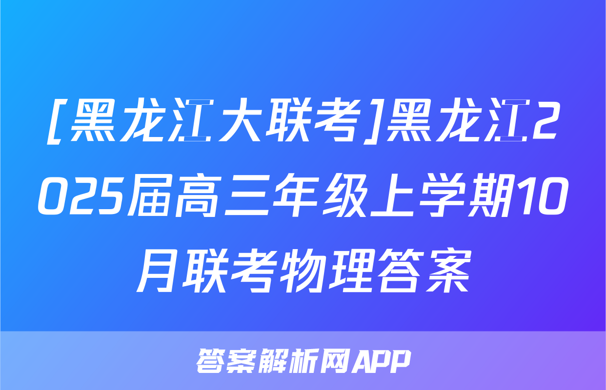 [黑龙江大联考]黑龙江2025届高三年级上学期10月联考物理答案正在持续更新,目前大联考答案为大家整理了相关试题及答案,供大家查缺补漏,高效提升成绩。