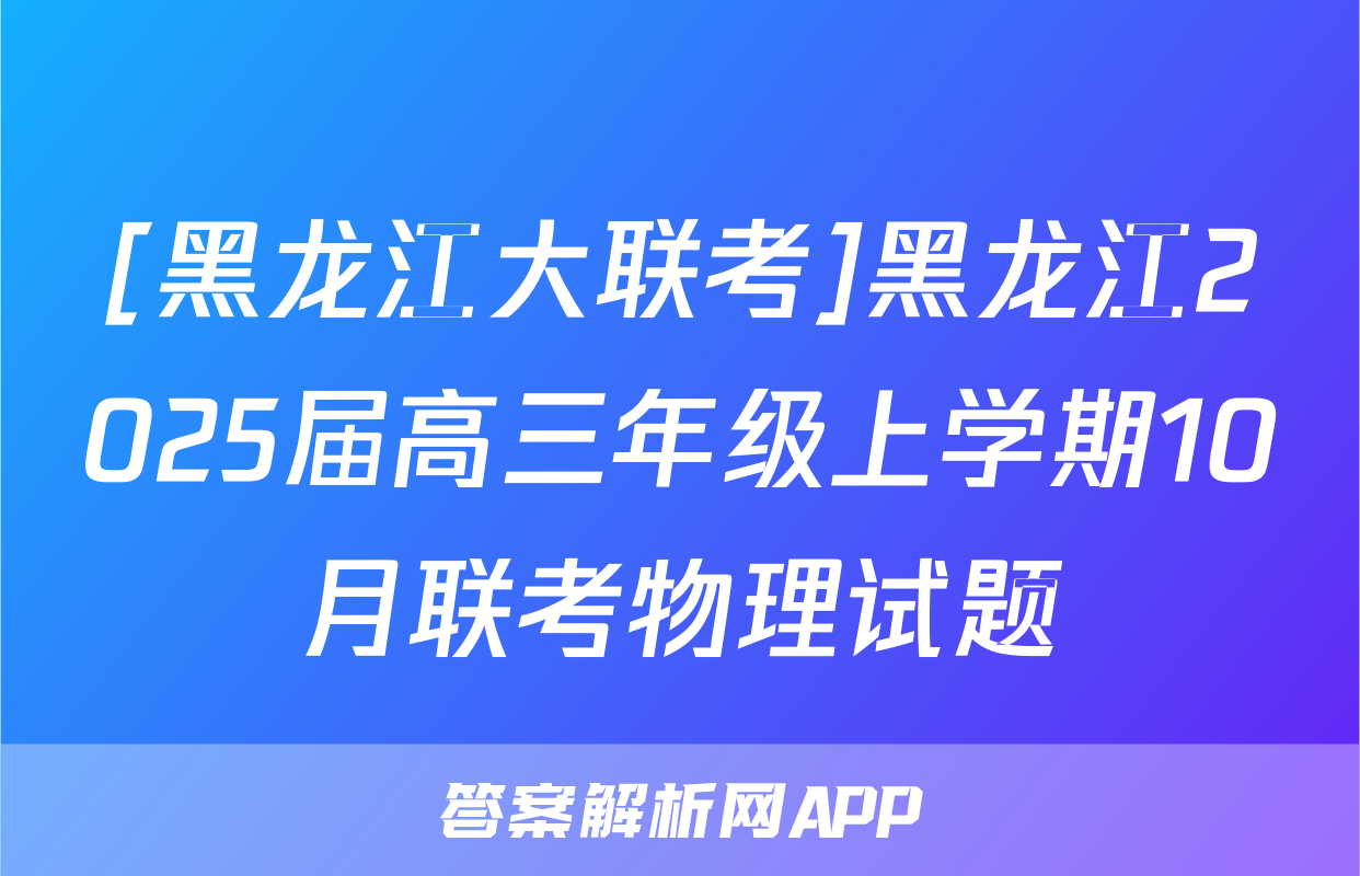 [黑龙江大联考]黑龙江2025届高三年级上学期10月联考物理试题正在持续更新,目前大联考答案为大家整理了相关试题及答案,供大家查缺补漏,高效提升成绩。