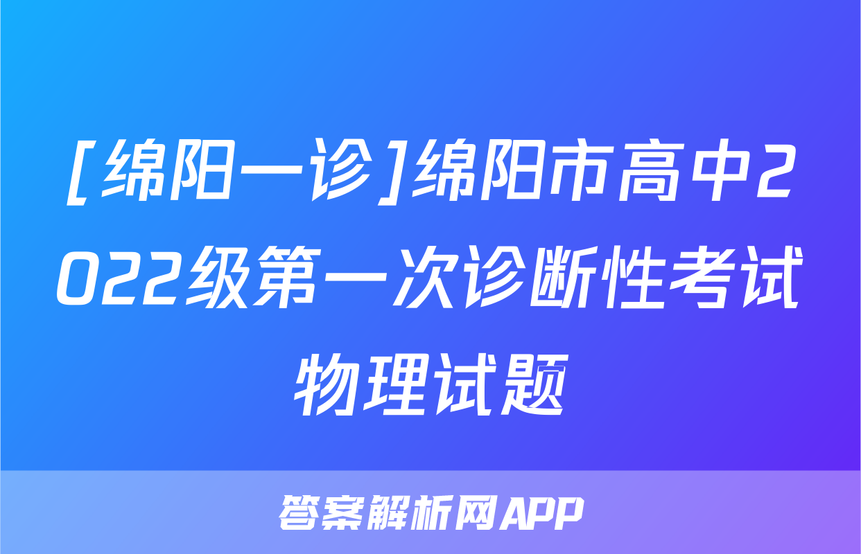 [绵阳一诊]绵阳市高中2022级第一次诊断性考试物理试题正在持续更新,目前大联考答案为大家整理了相关试题及答案,供大家查缺补漏,高效提升成绩。