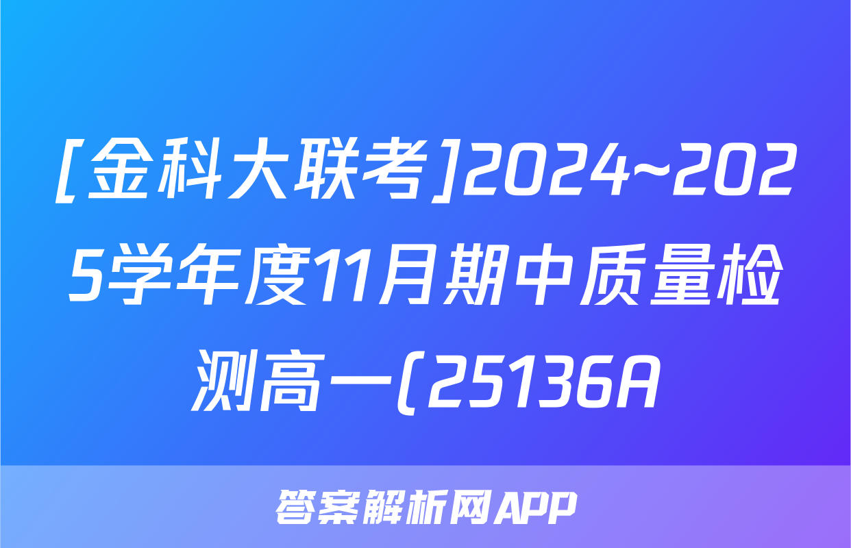 [金科大联考]2024~2025学年度11月期中质量检测高一(25136A)语文答案正在持续更新,目前大联考答案为大家整理了相关试题及答案,供大家查缺补漏,高效提升成绩。