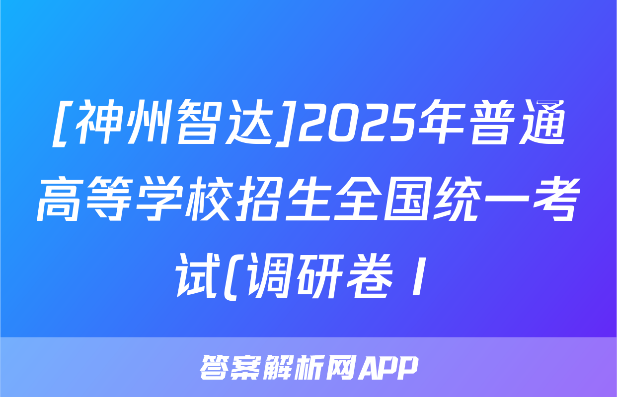 [神州智达]2025年普通高等学校招生全国统一考试(调研卷Ⅰ)地理试题正在持续更新,目前大联考答案为大家整理了相关试题及答案,供大家查缺补漏,高效提升成绩。