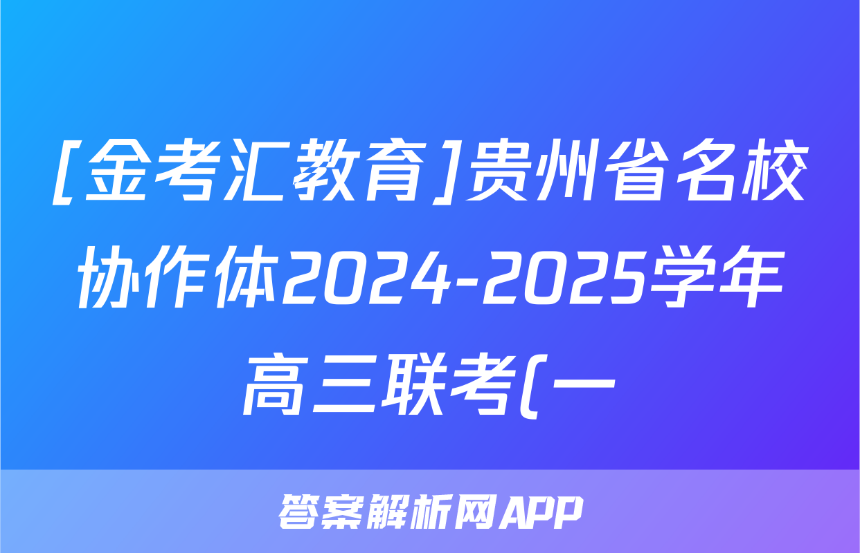 [金考汇教育]贵州省名校协作体2024-2025学年高三联考(一)1化学试题正在持续更新,目前大联考答案为大家整理了相关试题及答案,供大家查缺补漏,高效提升成绩。