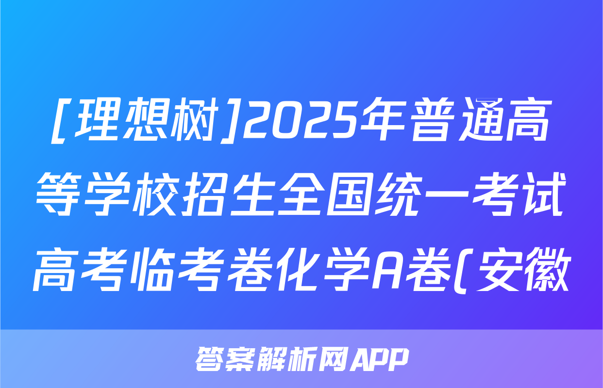 [理想树]2025年普通高等学校招生全国统一考试高考临考卷化学A卷(安徽)答案正在持续更新,目前大联考答案为大家整理了相关试题及答案,供大家查缺补漏,高效提升成绩。