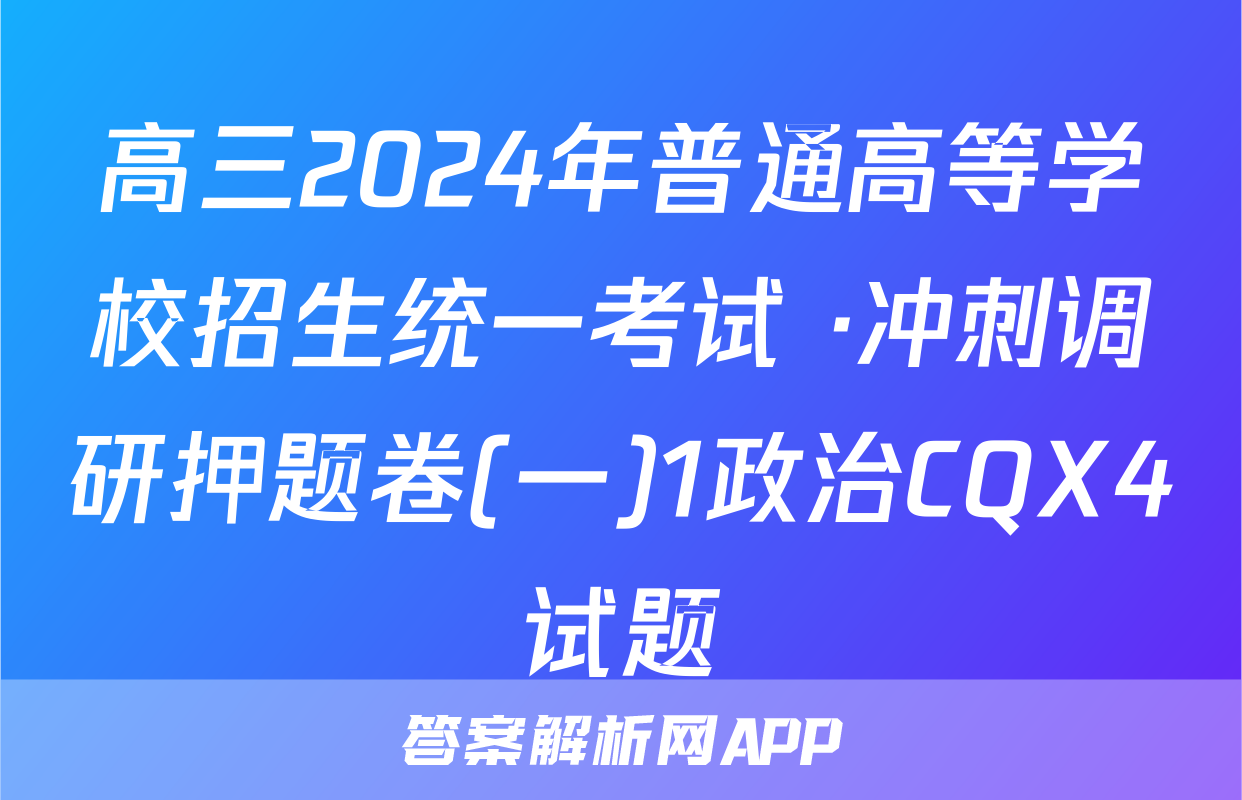 <p>1、2024年普通高等学校招生统一考试 CQX4·冲刺调研押题卷(一)1化学CQX4答案</p><br><p><p>1、2024年普通高等学校招生统一考试 CQX4·冲刺调研押题卷(一)1地理C...