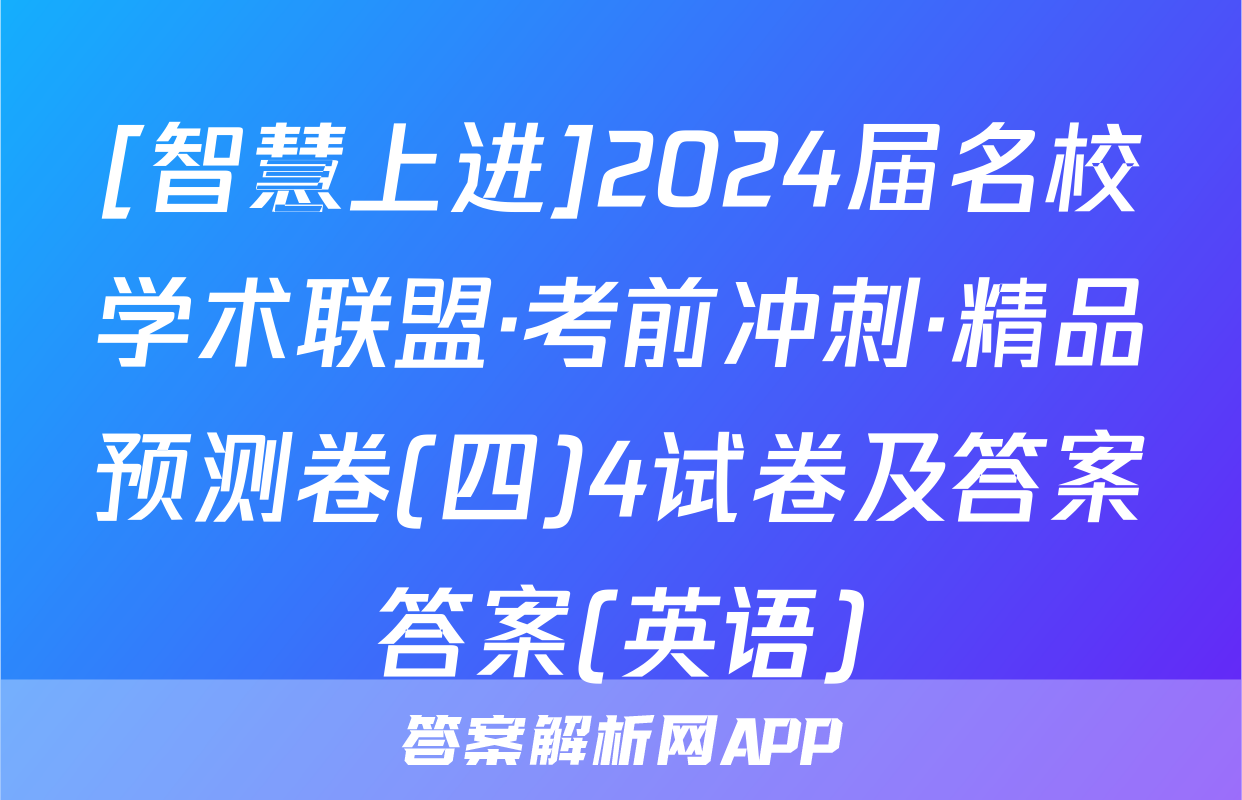 <p>1、2024届智慧上进 名校学术联盟·考前冲刺·精品预测卷(三)3各科试卷答案试题(英语)</p><br><p><p>1、2024届智慧上进 名校学术联盟·考前冲刺·精品预测卷(三)3...