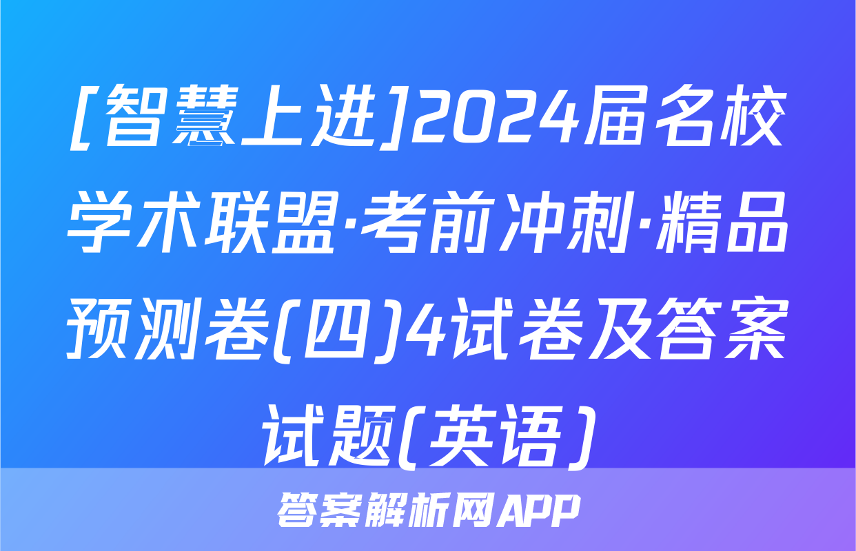 [智慧上进]2024届名校学术联盟·考前冲刺·精品预测卷(三)3试卷及答案试题(英语)