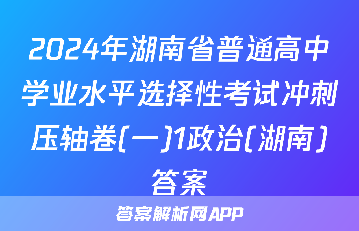 2024年湖南省普通高中学业水平选择性考试冲刺压轴卷(一)1政治(湖南)答案