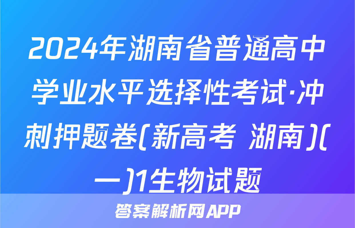 <p>1、2024年湖南省普通高中学业水平选择性考试·冲刺押题卷(新高考 湖南)(一)1生物答案</p><br><p><p>1、2024年湖南省普通高中学业水平选择性考试·冲刺押题卷(新...