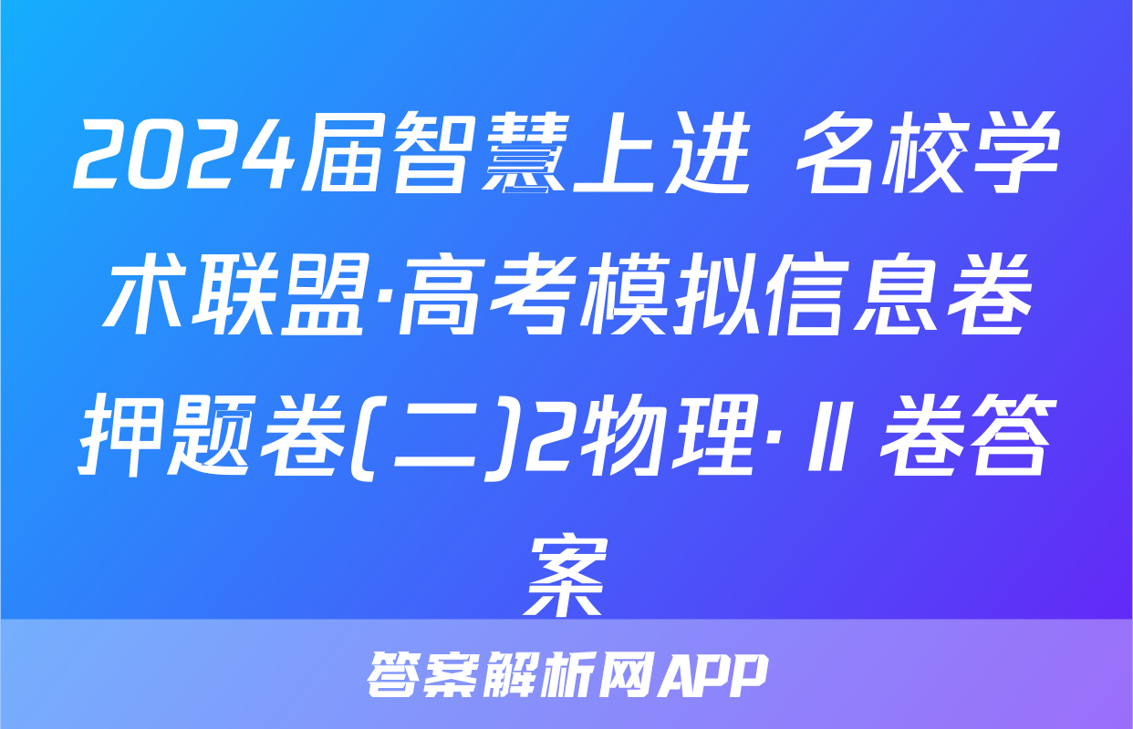 2024届智慧上进 名校学术联盟·高考模拟信息卷押题卷(二)2物理·Ⅱ卷答案