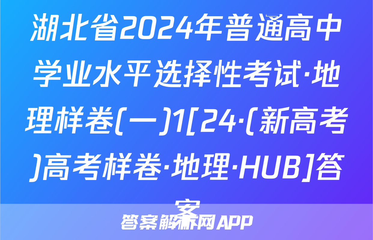 <p>1、湖北省2024年普通高中学业水平选择性考试·地理冲刺卷(一)1[24·(新高考)CCJ·地理·HUB]答案</p><br><p><p>1、辽宁省2024年普通高中学业水平选择性考试·语文...